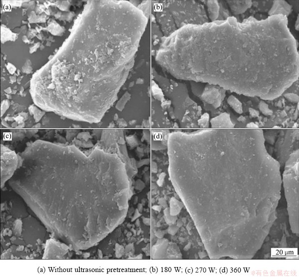 Fig. 2 SEM images of coking middlings with different ultrasonic power[35]