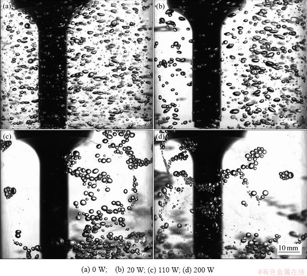 图5 超声处理3 s时不同超声功率对气泡聚集的影响[61]