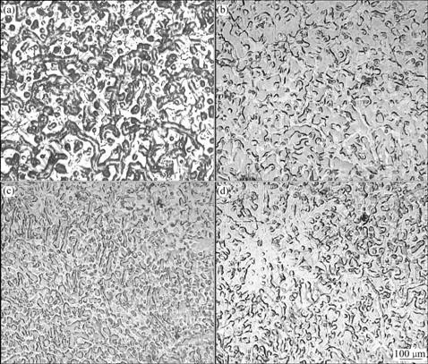Fig.1 Optical micrographs of as-cast alloys: (a) Alloy 1; (b) Alloy 2; (c) Alloy 3; (d) Alloy 4