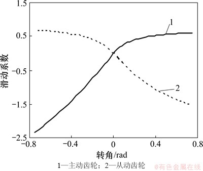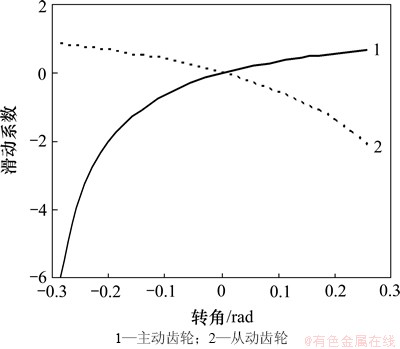 根据齿轮啮合原理,齿轮1和2的滑动系数可表示为[9]