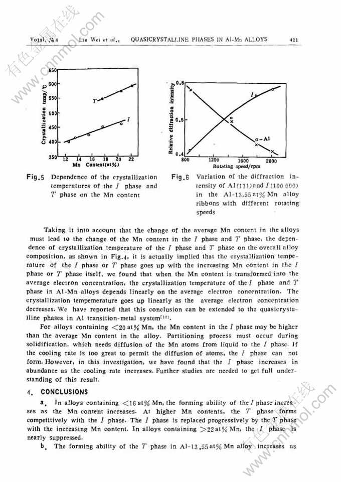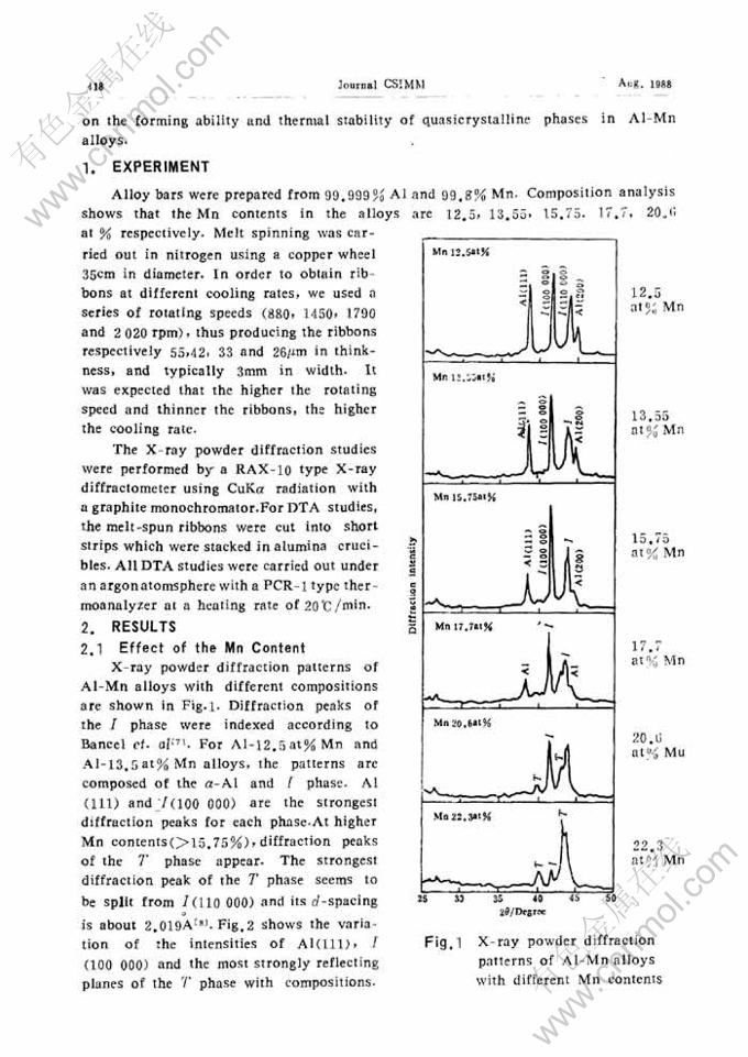 合金成分和冷凝速率对Al-Mn合金中准晶相形成能力和热稳定性的影响