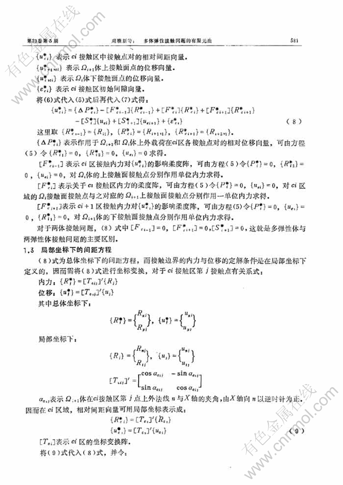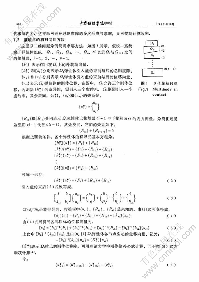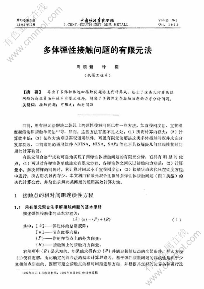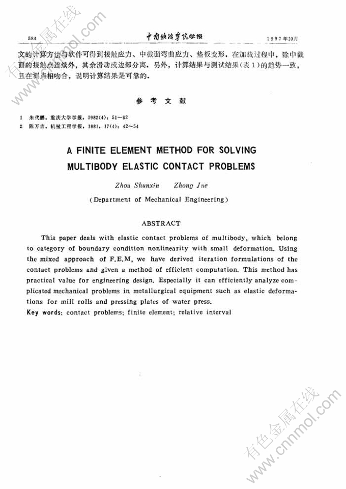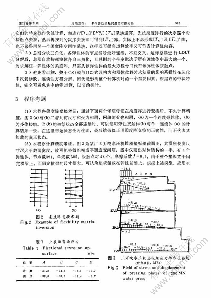 摘 要:导出了多弹性体迭加接触问题的迭代计算式,给出了这类几何非线性问题的高效算法和通用有限元程序,解决了多构件复杂接触状态的力学分析问题。
