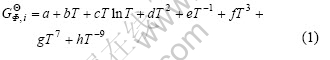 is the molar enthalpy of the component i at 298.15 K and 101 325 Pa in its standard element reference state, and T is the absolute temperature. The last two terms in Eqn.(1) are used only outside the ranges of stability, the term gT7 is relative to the liquid below the melting point and hT –9 to the solid phases above the melting point.