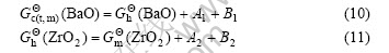 were consistent with those used by LU et al[24], which were little different from those of SGTE substance database since some modification was made. Here, l denotes liquid, c, t and m stand for cubic, tetragonal and monoclinic ZrO2, respectively, h represents halite BaO. The Gibbs energy functions employed in this work are expressed as