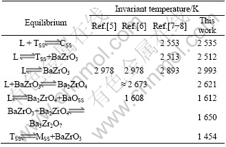 Table 2 Comparison between calculated and measured coordinates of invariant temperatures in ZrO2-BaO system