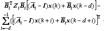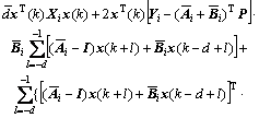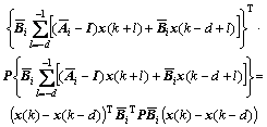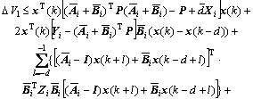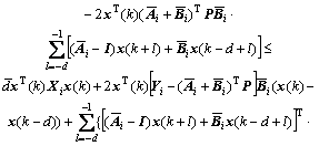 定理1:对于给定的控制器增益K,如果存在对称正定阵P和Q,对称矩阵Xi和Zi以及矩阵Yi,使得以下矩阵不等式成立,则闭环系统(9)和(10)是渐近稳定的: