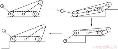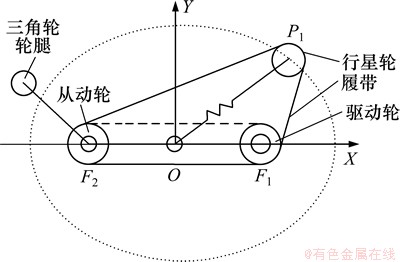 根据可变构型履带机构的特点,将椭圆形成原理引入机器人的构型设计中,可推衍出主臂可变履带机器人的基本构型。文献[19]提出了一种利用链轮齿轮传动关系来实现椭圆形成轨迹的设计方案,但内部传动复杂,载荷较大。