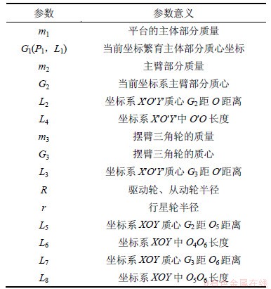 为了计算方便,机器人的相关参数如表3所示。则整个机器人平台的质心G0为