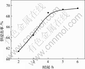 Fig.3 Influence of leaching time on leaching rate of zinc