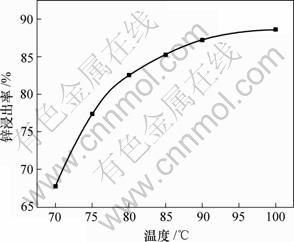 Fig.4 Influence of leaching temperature on leaching rate of zinc