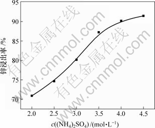 3.1.3 硫酸铵浓度对锌浸出率的影响