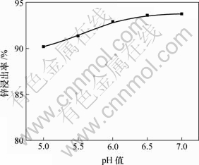 图6 硫酸铵溶液pH值对锌浸出率的影响