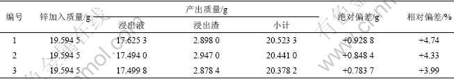 由表2可以看出,锌的平衡情况较好,平衡率可达到95.65%,而产生正偏差的原因是溶液分析锌含量 偏高。