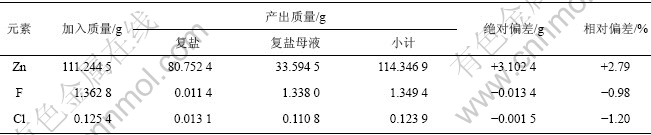 表4 沉复盐过程中Zn, F和Cl的平衡
