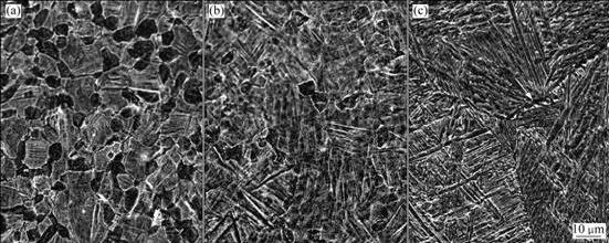 Fig.4 Microstructures of Ti-6Al-4V alloy after solution treatment at different temperatures: (a) 940 ℃; (b) 980 ℃; (c) 1 000 ℃