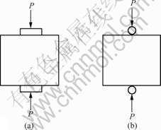 Fig.2 Schemes of splitting tension test method: (a) Using 100 mm×100 mm×100 mm SFRC specimen to investigate fiber’s volume fraction and loading rate on splitting tensile strength; (b) Using 150 mm×150 mm×150 mm SFRC specimen to investigate effect of steel-pad’s shape and size on splitting tensile strength
