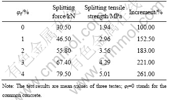 Table 1 Test results of 100 mm×100 mm×100 mm specimens with different volume fractions of steel fiber
