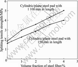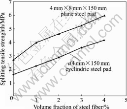 Fig.3 shows the results of the test concerning the splitting tensile strength and two kinds of steel-pads using the 150 mm×150 mm×150 mm SFRC specimens with different steel fiber’s volume fraction.