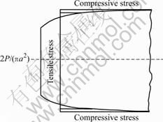 Fig.5 Scheme of stress distribution on splitting surface of SFRC cubic specimen under vertical compressive load