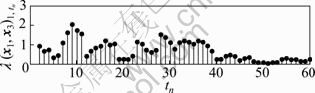 K),满足fjT≥τjmax,其中T为采样周期,保证所取数据段能够包含一个时滞范围内的有效信息。为使tn=K时能取到一组完整的数据,K+fj-1≤P,即K<P+1-fj-1。当变量xj取fj个数据时,参考变量x1相应的取fj个数