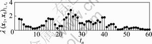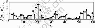标表示1#分解槽内的氧化铝浓度所取的第tn(tn=1, 2, …, 60)组数据,纵坐标表示对应的互相关矩阵的最