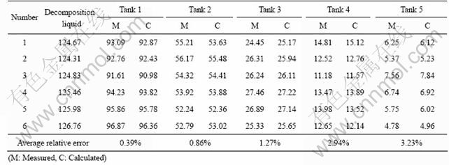表1 连续碳分过程各槽溶液氧化铝浓度的实际测量值与模型计算值