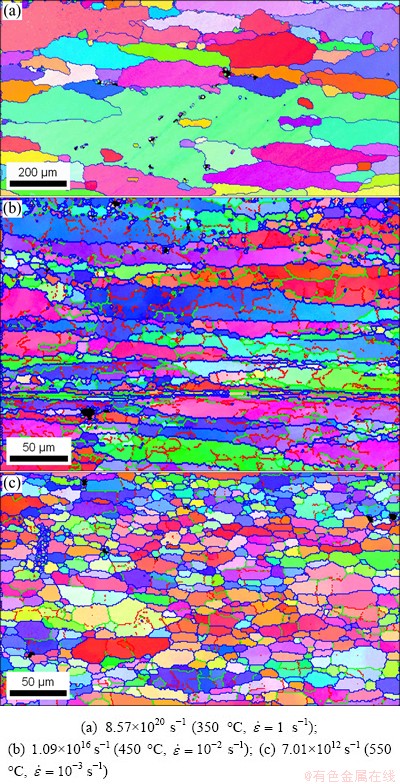Fig. 17 OIM micrographs of alloy compressed under different Z parameters