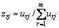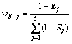 5) 对矩阵U进行标准化,并计算各评价指标的熵为