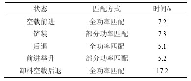 由试验数据及表1计算得:1个V型铲装作业循环全功率匹配消耗的发动机转矩为121.28 N·m,部分功率匹配消耗的发动机转矩为263.97 N·m。