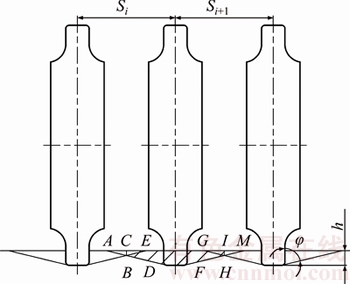 where i=1, 2, …, m–1, Si is cutter spacing between the ith cutter and the (i–1)th cutter, φ is half broken angle of the rock.