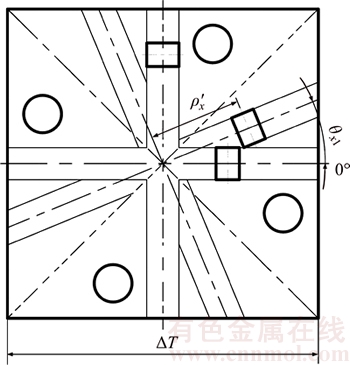 For the edge block area, set θx2 as the tilt angle of the star line, and set ρx2 as the critical interference polar radius between the cutter hole and the weld on the star line, then: