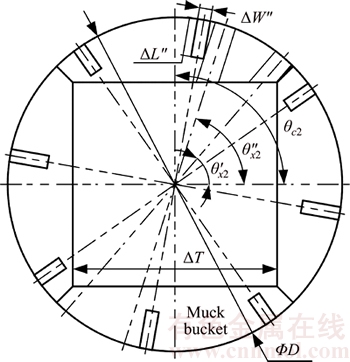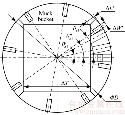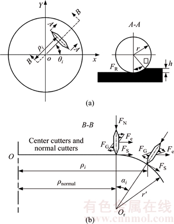 In the process of actual hard rock excavation, the cutter ring’s wear is the main cause of failure for the gage cutters. ZHANG et al [13] has studied the formula for the arc length of the gage cutter’s rock breakage point during a cutting depth process; SHU [14] has studied the wear volume calculation for the disc cutters based on abrasive wear. Making use of these two formulas, the formula of the wear volume for each gage cutter can be obtained after the cutter-head rotating one cycle.