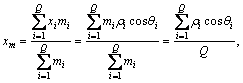 where (xm, ym) is the centroid position of all cutters; (xi, yi) is the centroid position of the ith cutter; mi is the mass of the ith cutter, mi=m; and Q is the number of cutters.