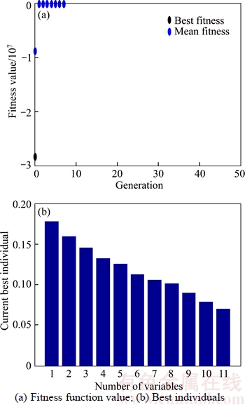 Figure 15 Changing curves of fitness function value for best individual and best individual (model 1):