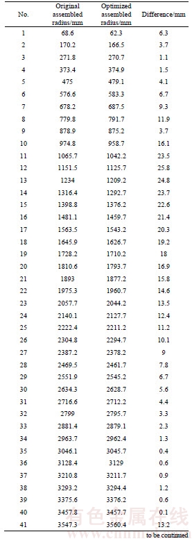The optimized results and the comparison with the original assembled radiuses are shown in Table 4. This illustrates that when the original cutter-head size and its transition arc area are left unchanged, the optimized radius of the No. 12 cutter has the greatest difference from the original: 25.8 mm, only 0.64% of the cutter-head radius size. Similarly, the optimized radius of the No. 51 cutter has the smallest difference from the original, which is 0 mm; this is consistent with the precondition. Therefore, the established optimization model has evident feasibility and validity.