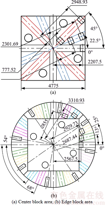 Assume that D is the diameter of the cutter-head, △T is the side length of the central block, and △L is the length and △W is the width of the cutter holes. Figure 7 shows that the boundary condition consists of two parts, the center block area and the edge block area.