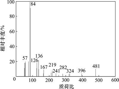 质荷比为324,282,241,219和84各碎片峰都可找到相对应的碎片离子,其中质荷比为84的碎片峰因相对丰度最大为基峰。盐酸头孢吡肟(1)的质谱分析结果如表6所示。