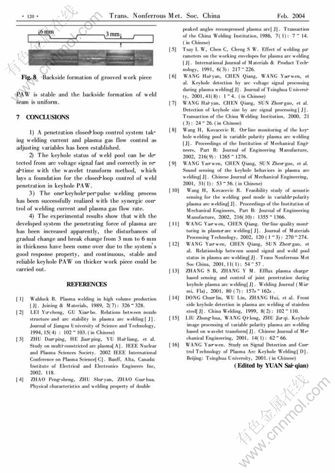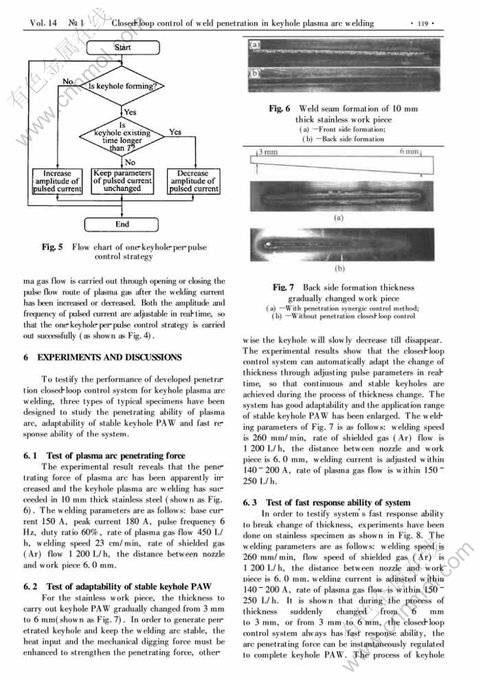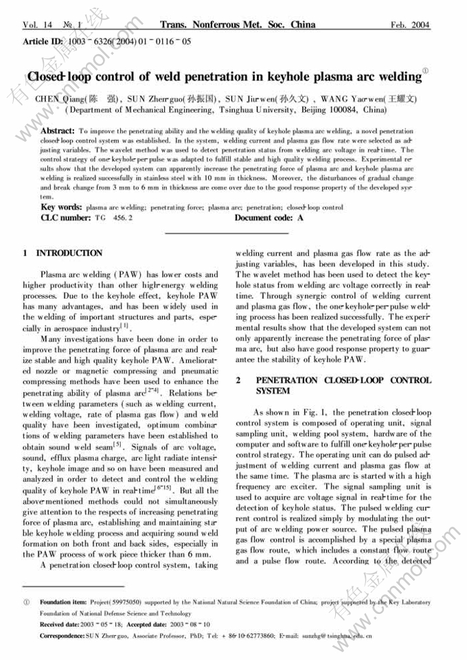 Key words:plasma arc welding; penetrating force; plasma arc; penetration; closed-loop control