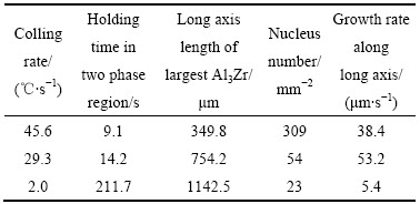 Table 2 Nucleation rate and growth rate of Al3Zr phase during solidification in different cooling rates