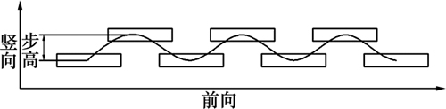 根据人类行走过程,1个完整的步行周期由单腿支撑相(SSP)和双腿支撑相(DSP)这2个阶段组成。步行机器人通过交替的双足踏地来实现移动,所以,在足接触地面的瞬间,足底与地面之间产生冲击力,并且足部落地速度越大,冲击力越大,关节电机转矩峰值越大。为了减小冲击力,规划足部在矢状面内的运动轨迹为正弦曲线,这样,机器人足部在最高处水平速度最大,在离地和落地瞬间竖直方向速度最小,可以有效减少冲击。双足步行机器人足部在矢状面内的运动轨迹如图2所示。