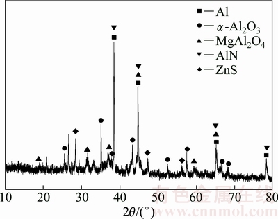 供试铝灰来自江西某铝业公司废铝熔炼工艺产生的二次铝灰。将供试铝灰置于刚玉研钵中磨细,过75 μm筛后保存备用。二次铝灰主要化学成分见表1。XRD分析进一步表明(图1),铝灰中主要物相为金属铝、刚玉、镁铝尖晶石,同时含有氮化铝等成分。对铝灰中含铝物相化学分析,金属铝占铝灰质量的23.67%,刚玉占铝灰质量的23.57%,镁铝尖晶石占铝灰质量的9.10%,氮化铝占铝灰质量的2.19%。