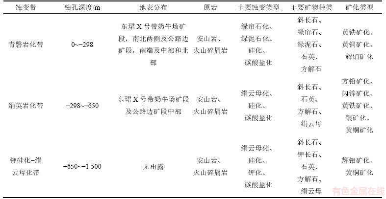 Table 1 Wall rock alteration zonations of Dongjun deposit