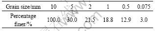In the true triaxial test, vertical load was applied through a rigid plate, and one horizontal load was passed to specimen by a specially designed block similar to that used by LADE and DUNCAN [12]. The other horizontal load was applied by a flexible water bag [21]. The size of the cubical specimen was 12 cm× 12 cm×6 cm.