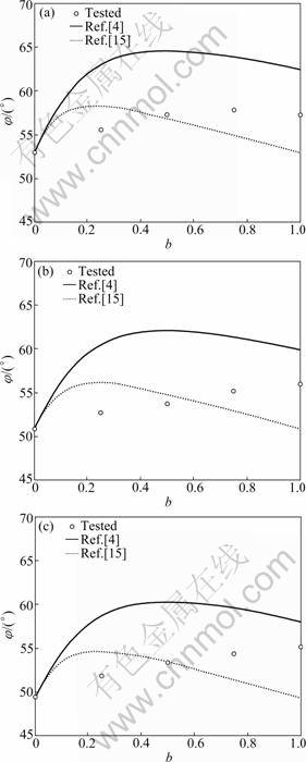 It can be seen from Fig.4 that the measured friction angle from the conventional triaxial compression (b=0) is the smallest in all the tests. In general, the friction angle increases with increasing value of b, except that it decreases with increasing value of b from 0.75 to 1.00 for σ3=200 kPa, as shown in Fig.4(a).