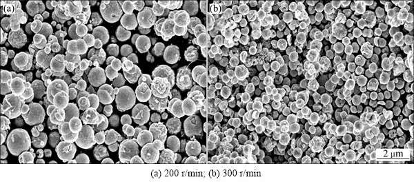 2.3.1 搅拌速度对颗粒形貌及粒径分布的影响