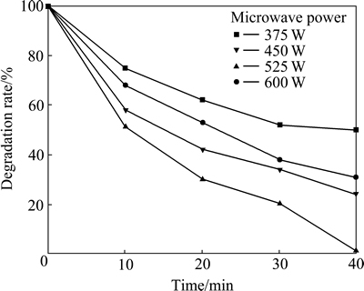 图10 不同微波功率制备的复合球的光催化效果