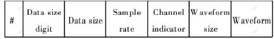 其中,#表示数据帧开始;Data size digit表示数据长度(1 digits);Data size表示数据帧的总长度(4 digits);Sample rate表示数据帧数据的采样频率(4 bytes);Channel indicator表示数据帧数据的来源通道;Waveform size表示数据帧中数据的长度(4 bytes);Waveform表示有效的500个采样点的数据(1000 bytes)。