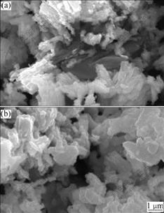 Fig.6 SEM images of Co3O4/graphite composites synthesized at different temperatures: (a) 400 ℃; (b) 500 ℃