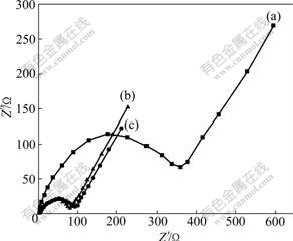 Fig.9 Nyquist impedance spectra of different samples: (a) Pure Co3O4; (b) Mass ratio of Co3O4 to graphite is 1:1; (c) Mass ratio of Co3O4 to graphite is 1:2