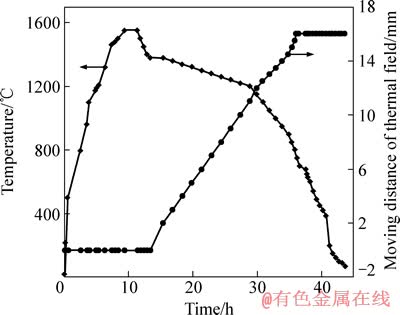 Fig. 1 Directional solidification temperature of Si-Sn alloy refining and moving distance of thermal field